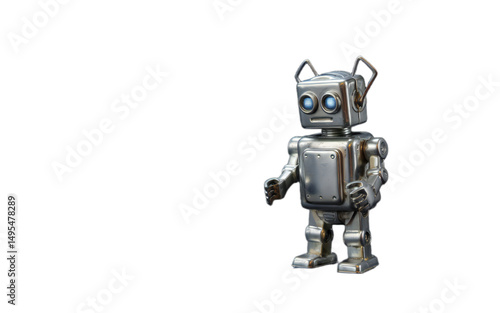 Vintage Silver Robot Toy on Black Background on transparent background