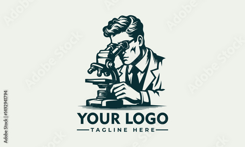 Vintage style male scientist carefully observed a microscope in laboratory research setting. Science concept