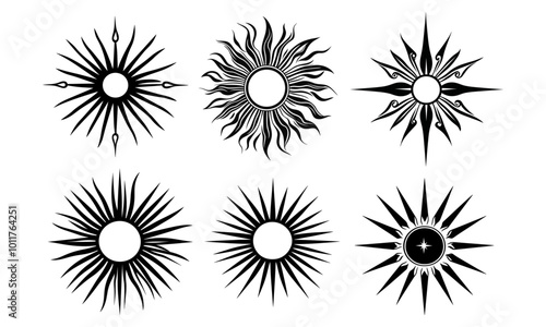 Vintage Sun Collection. Wavy Sun Rays. Logo Sun Silhouette. Radial Wavy Sunset Beams. Vector Illustration.