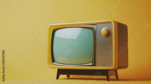 Vintage television set with blank screen on yellow background.