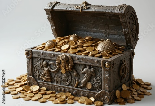 Vintage Treasure Chest Overflowing with Gold Coins and Artifacts