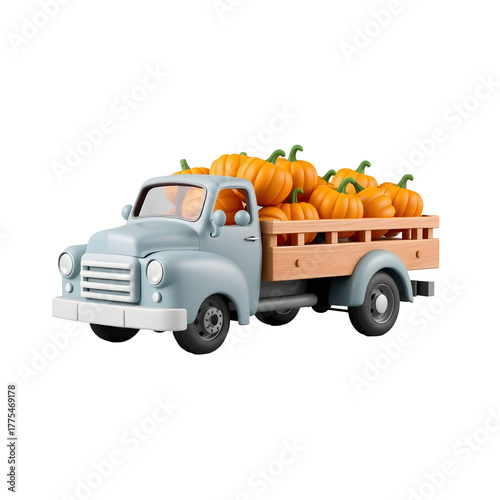 Vintage truck filled with pumpkins isolated on transparent background