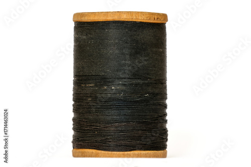 Vintage wooden thread spool on white background