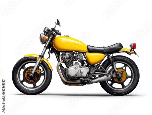 Vintage Yellow Motorcycle on White Background