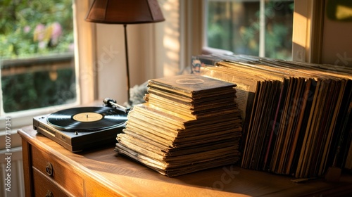 Vinyl Record Collection on Wooden Table