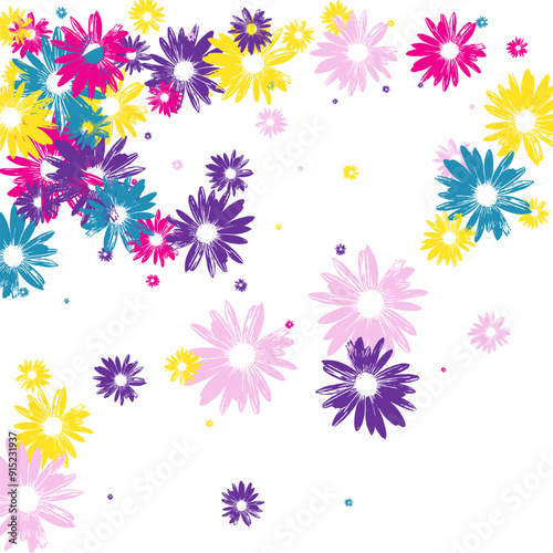 Violet Flower Background White Vector. Leaf Chic Textile. Multi-colored Petal Element. Festive Backdrop. Beautiful Pink Flowers.