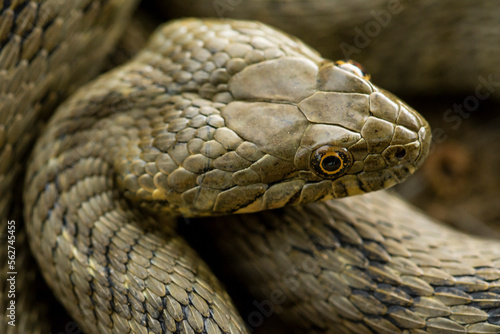 Viperine snake slithering on ground