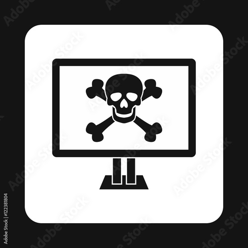 Virus on computer icon in simple style isolated on white background. Infection symbol