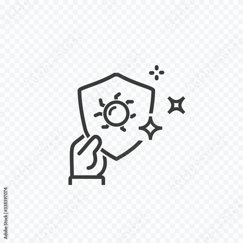 Virus shield protect icon isolated on transparent background. Hygiene, disease prevention symbol. Vector satefy healthcare stroke line sign.