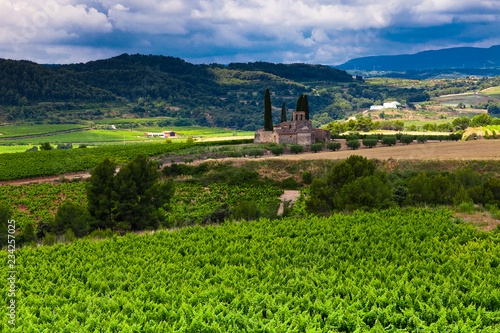 Vista de viñedos en la comarca del Penedés, provincia de Barcelona, Catalunya