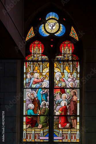 vitrail de l'église de Nogent sur Seine montrant une scene avec le Christ