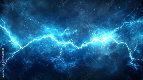 Vivid Blue Lightning in a Dramatic Electric Storm Capturing Energy : Generative AI