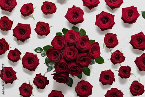 Vivid Cluster of Isolated Red Roses on White Background