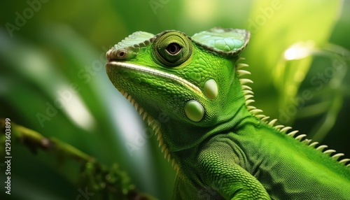 Vivid Green Jungle Creature Roaming Mystical Rainforest at Dawn, Capturing the Enchanting Beauty of Natures Hidden Gems