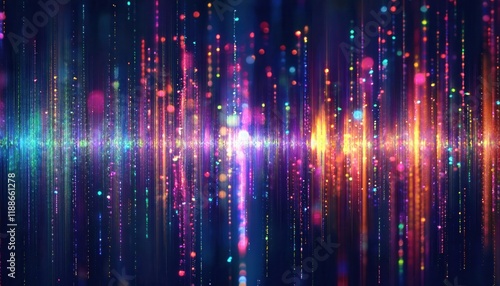 vivid light spectrum with neon glow, abstract digital sound wave pattern, futuristic art background for design and technology projects