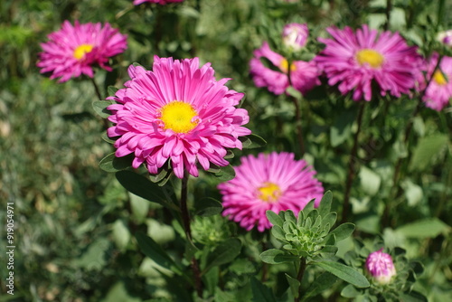 Vivid pink flowers of China asters in mid July