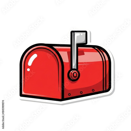 Vivid red postal container depicted with thick outlines and a stylized graphic appearance