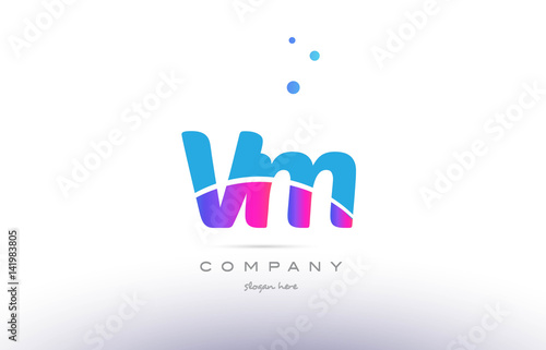 vm v m pink blue white modern alphabet letter logo icon template