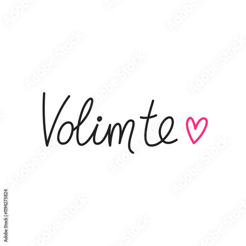 Volum te. Simple handwritten phrase "I love you" in Serbian language. Lettering. Minimalist calligraphy.