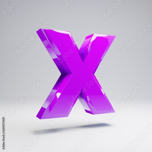 Volumetric glossy violet uppercase letter X isolated on white background.