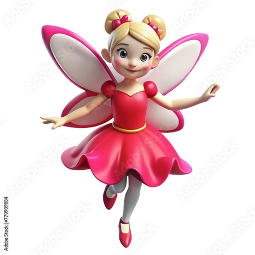 Volumetric Illustration of a Fairy in a Pink Dress with Wings