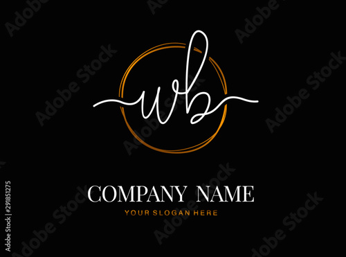 W B WB Initial handwriting logo design with circle. Beautyful design handwritten logo for fashion, team, wedding, luxury logo.