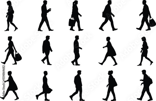 Walking People Silhouettes – Vector Icons of Business and Casual Figures in Motion for Design and Communication