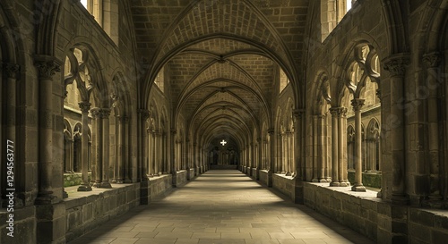 Walking Through an Ancient Stone Monastery Courtyard with Arched Ceiling