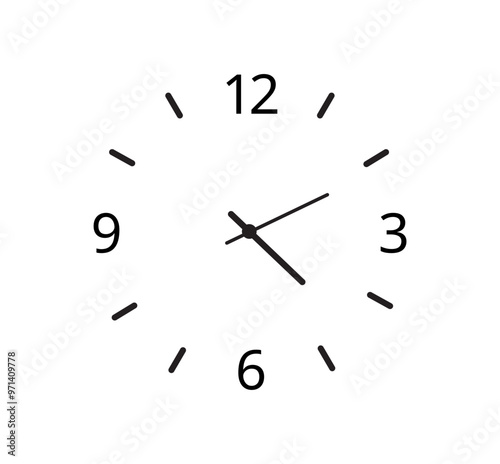 Wall clock black frame. Simple wall clock. Minimalist watch. modern design wall clock. Analog clock. Vector illustration