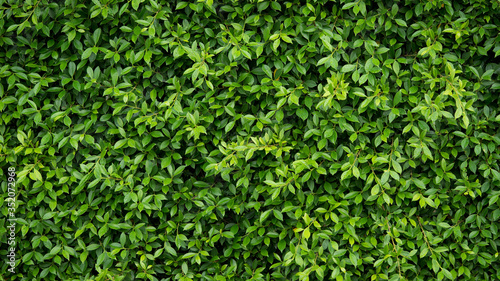 Wall of green leaf for nature background with copy space for text