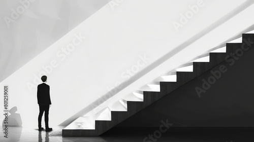 Wallpaper of success, side view, stairs, black and white (referring to hesitation to start)