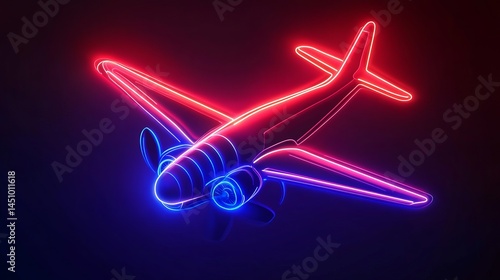 War Airplane Neon Sign. Vector Illustration of Plane Promotion.