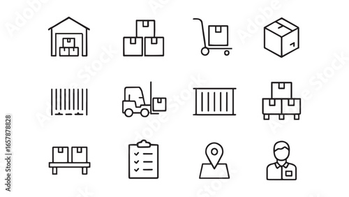 Warehouse Inventory Vector Icon Set for Logistics and Supply Chain