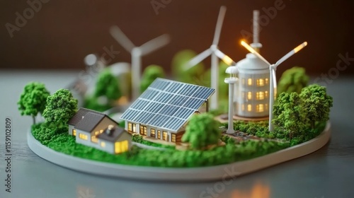 Warm 3D Industrial Energy Display in High Contrast