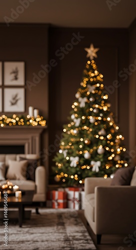 Warm Christmas Eve Glow: Cozy Living Room Scene AI Generated