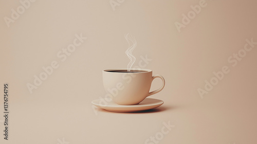 Warm coffee cup steaming on beige background minimalist design soft lighting simple elegance cozy