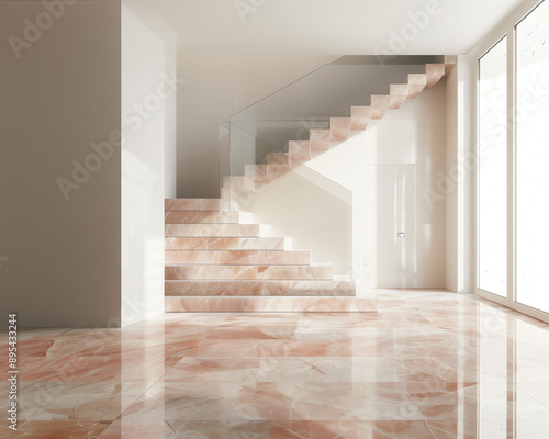 Warm Elegance: Rosa Portugués Marble Tile Installation - Alternating Pattern, High Resolution - Perfect for Elegant Flooring