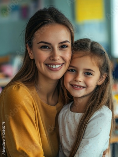 Warm Family Moment in a Classroom