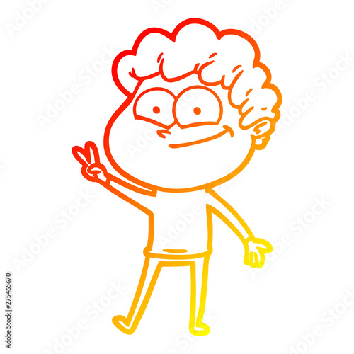 warm gradient line drawing cartoon happy man