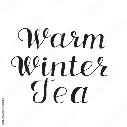 Warm Winter Tea Hand Lettering Quote. Cozy Winter Season Typography Design for Tea Lovers, Cafe Decoration, Holiday Card, Poster, Mug Print, Kitchen Art