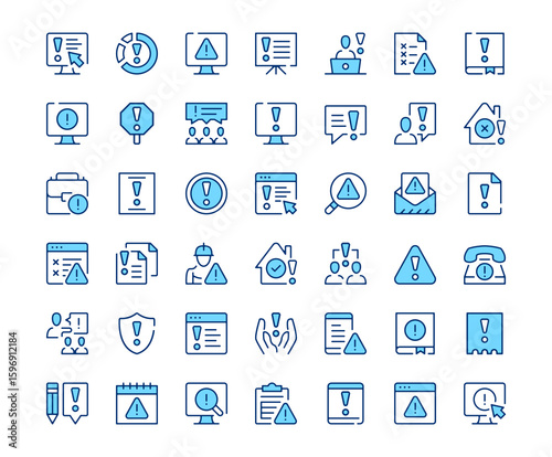 Warning icons. Vector line icon set. Modern outline design. Blue concept