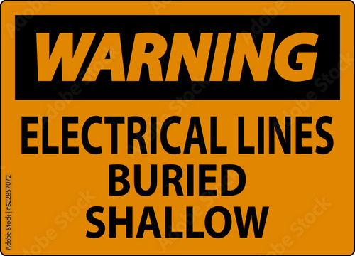 Warning Sign Electrical Lines, Buried Shallow On White Bacground