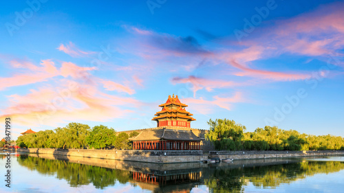 Watchtower of Forbidden City at sunset,Beijing,China