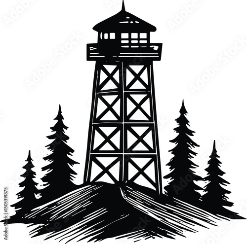 Watchtower vector black silhouette cricut design for T-Shirt