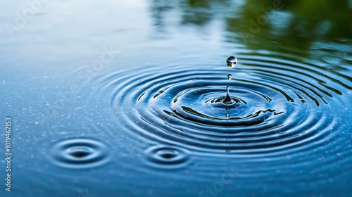 Water Drop Ripples Blue Liquid Surface Splash Nature Background