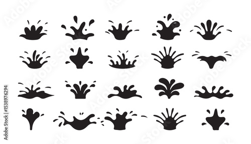 Water Splash Vector Silhouettes Set. Liquid Splatter and Wave Elements Collection. Victor illustration eps 10