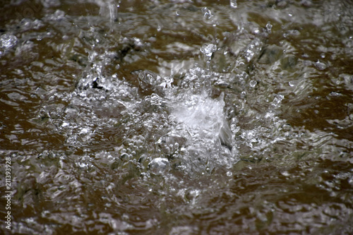 water splashes with big bubbles and waves, water surface splash in a fountain