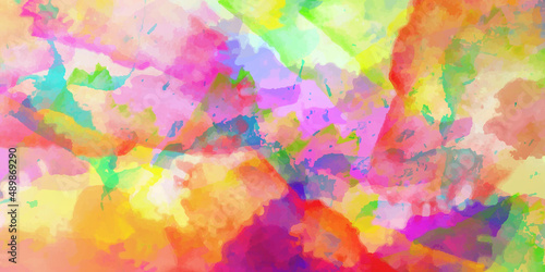 Watercolor background in blue pink and green colors, colorful painted background texture in abstract sunset or sunrise sky.abstract sunset sky with puffy clouds in bright rain.