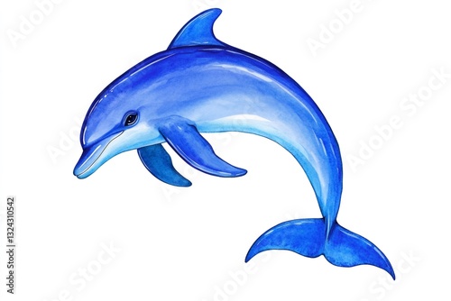 Watercolor blue dolphin jumping and playing in the ocean