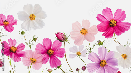 watercolor botanical Cosmos flowers texture template background.Elegant wedding invitation card background . Minimal hand painted Design for wedding or Valentine's Day